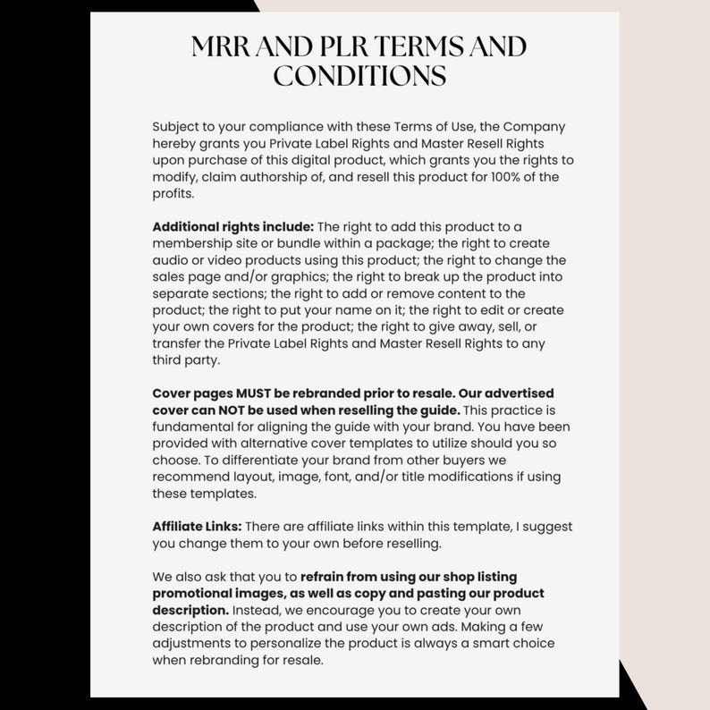 You can rebrand, edit, resell, and claim authorship. Cover must be changed before reselling. Full terms included inside.