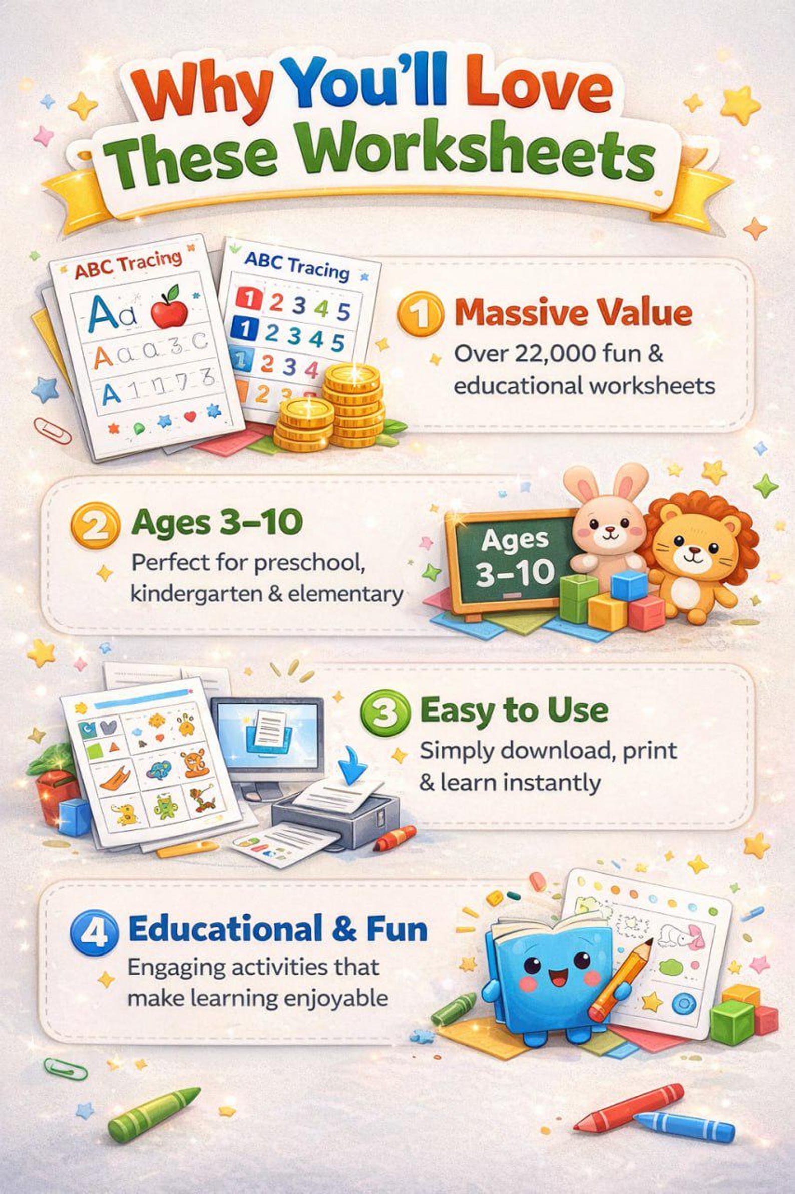 ? 22,000+ Kids Learning Worksheets Vault – Preschool to Elementary Printables (PLR MRR)