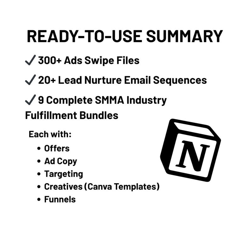 Boost your productivity and scale your business with this 300+ Notion Template Bundle, designed for entrepreneurs, agencies, creators, and business owners. This all-in-one collection includes swipe files, SMMA fulfillment systems, email nurture sequences, client acquisition tools, and niche-specific templates — all organized beautifully inside Notion.