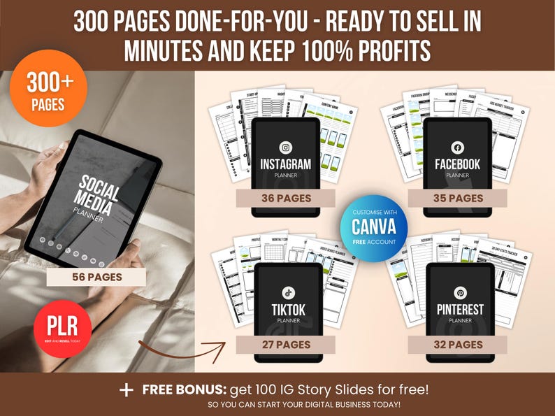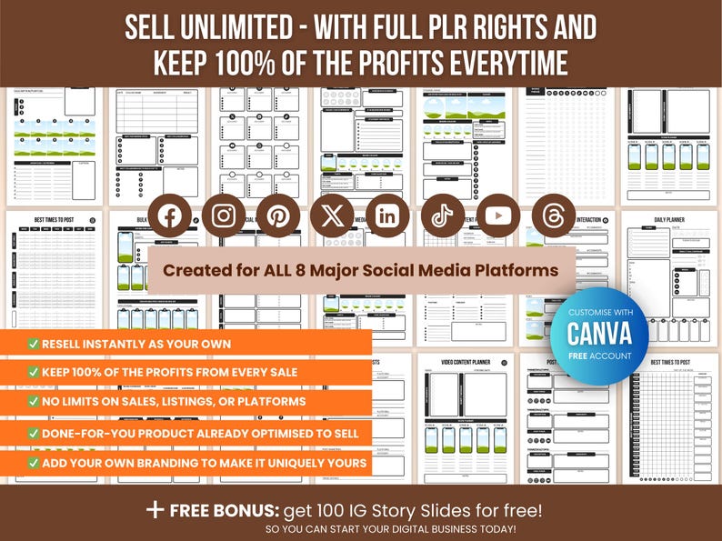 That all changed when I created this 300+ Page Social Media Planner Bundle | Editable Canva Templates | PLR Resell Rights | Printable Content Calendar Kit, a ready-to-sell digital product that instantly saves time and earns 100% profit.