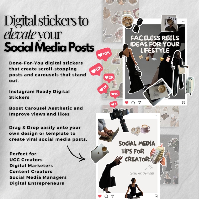Introducing the ultimate Instagram carousel digital sticker bundle designed for content creators, coaches, influencers, and digital entrepreneurs who want scroll-stopping content — AND the ability to resell it.