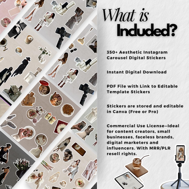 ? 350 Aesthetic Instagram Carousel Digital Stickers with PLR + MRR Rights ?Elevate your content. Grow your brand. Rese