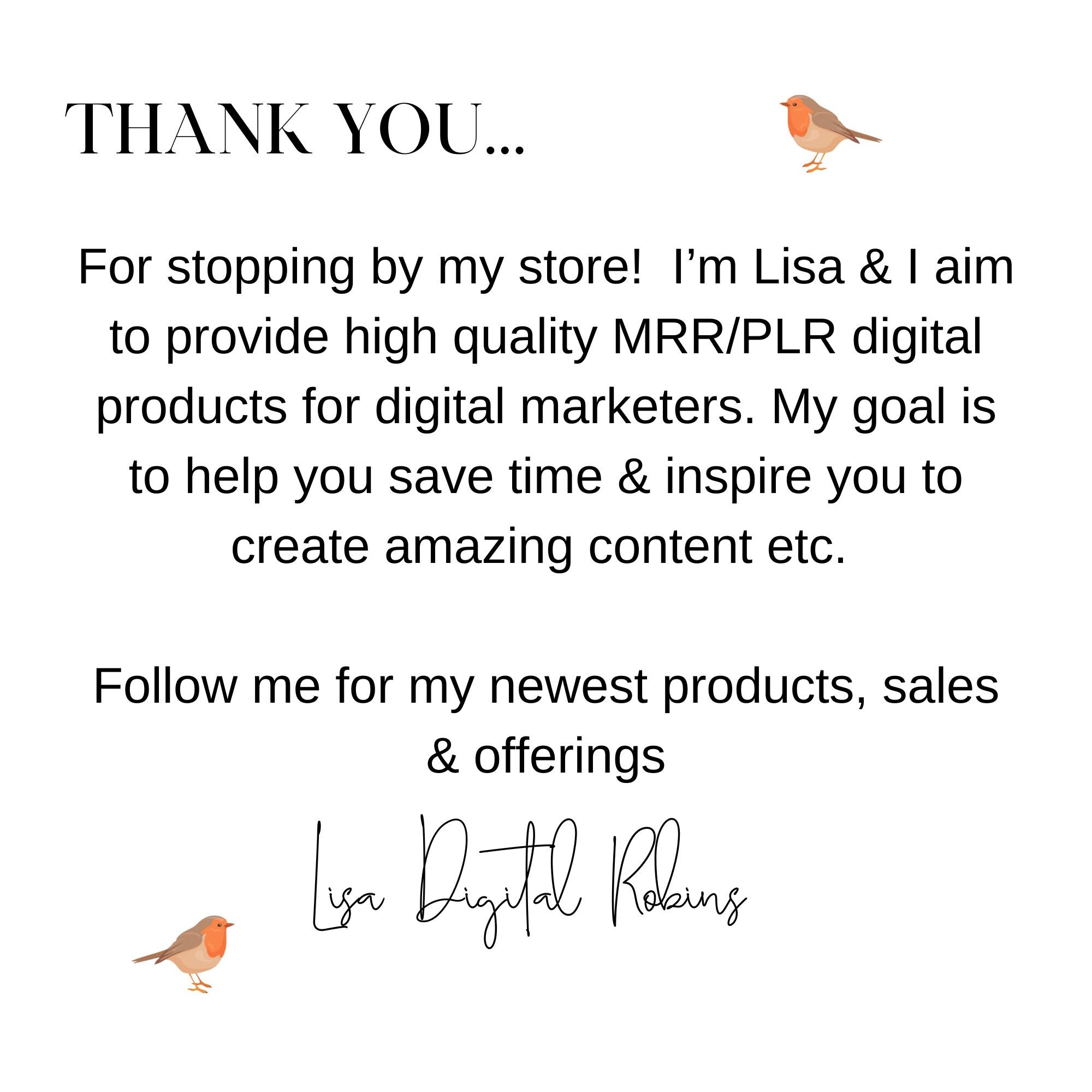 Please DO NOT use my shop listing promotional images/THUMBNAILS or copying/pasting my product description verbatim. Instead, consider crafting your distinct product description and using original advertisements that reflect your unique style. My thumbnails do NOT have PLR/MRR & can not be used, please make your own