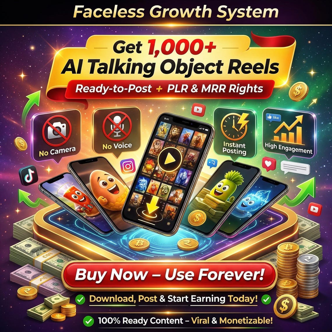 This bundle provides 1,000+ AI Talking Object Reels—engineered for instant engagement and high replay value. These "infotainment" style animations are designed to trigger the algorithm and keep viewers hooked.