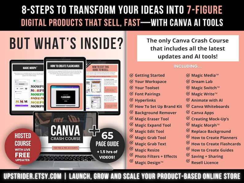 Discover the BRAND NEW Canva Crash Course with Master Resell Rights and Private Label Rights by Upstrider® — the NEW ultimate done-for-you Canva course to resell for 100% profit while learning how to create high-converting 7-figure digital products fast with AI Canva tools.