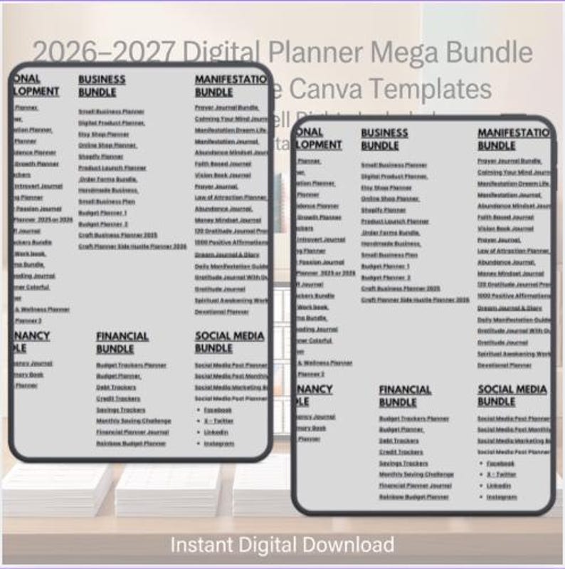 This Ultimate Planner Templates Vault includes a powerful library of 2026–2027 digital planners that you can fully customize and sell as your own products.