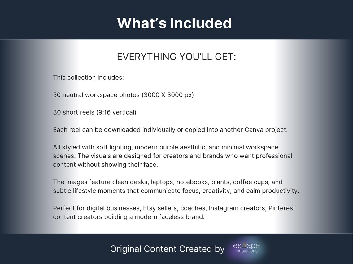 All images and reels in this collection were created specifically for this product.