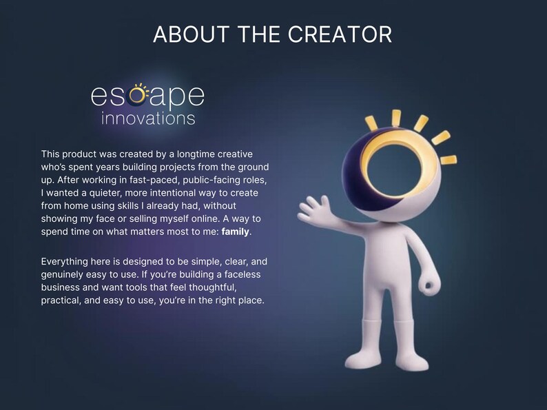 Each visual was generated and curated to follow a modern workspace aesthetic so creators and digital businesses can build a cohesive faceless brand.