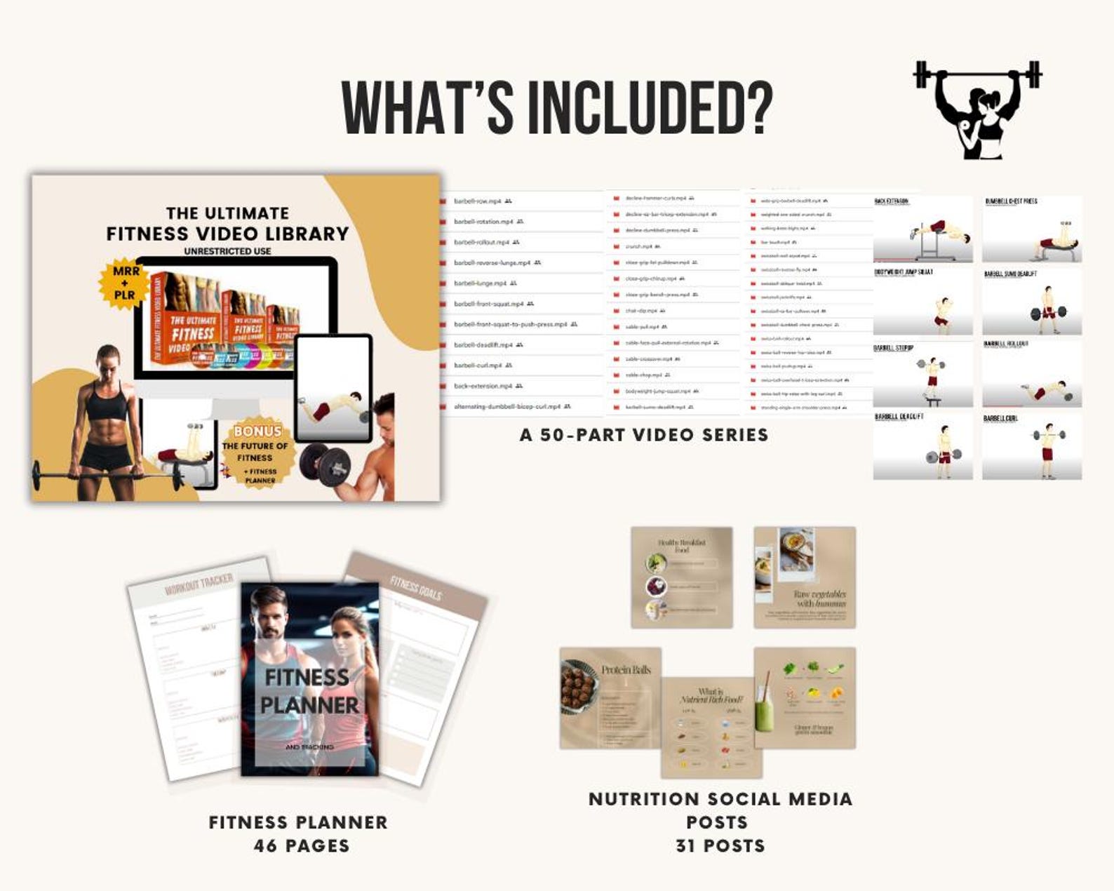 Fitness Bundle PLR MRR Two Fitness Videos Protein Snacks Fitness Checklists Health Wellness Gym Personal Trainer Fitness Planner DFY
