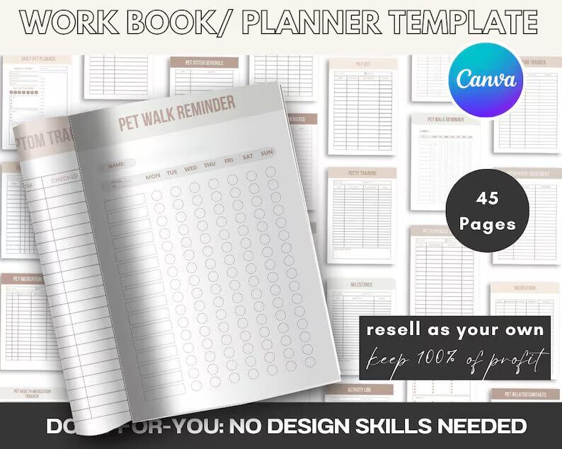 Start or grow your digital product shop with this professionally designed Pet Care Planner. Includes Private Label Rights (PLR) and Master Resell Rights (MRR) so you can customize, brand, and resell as your own.