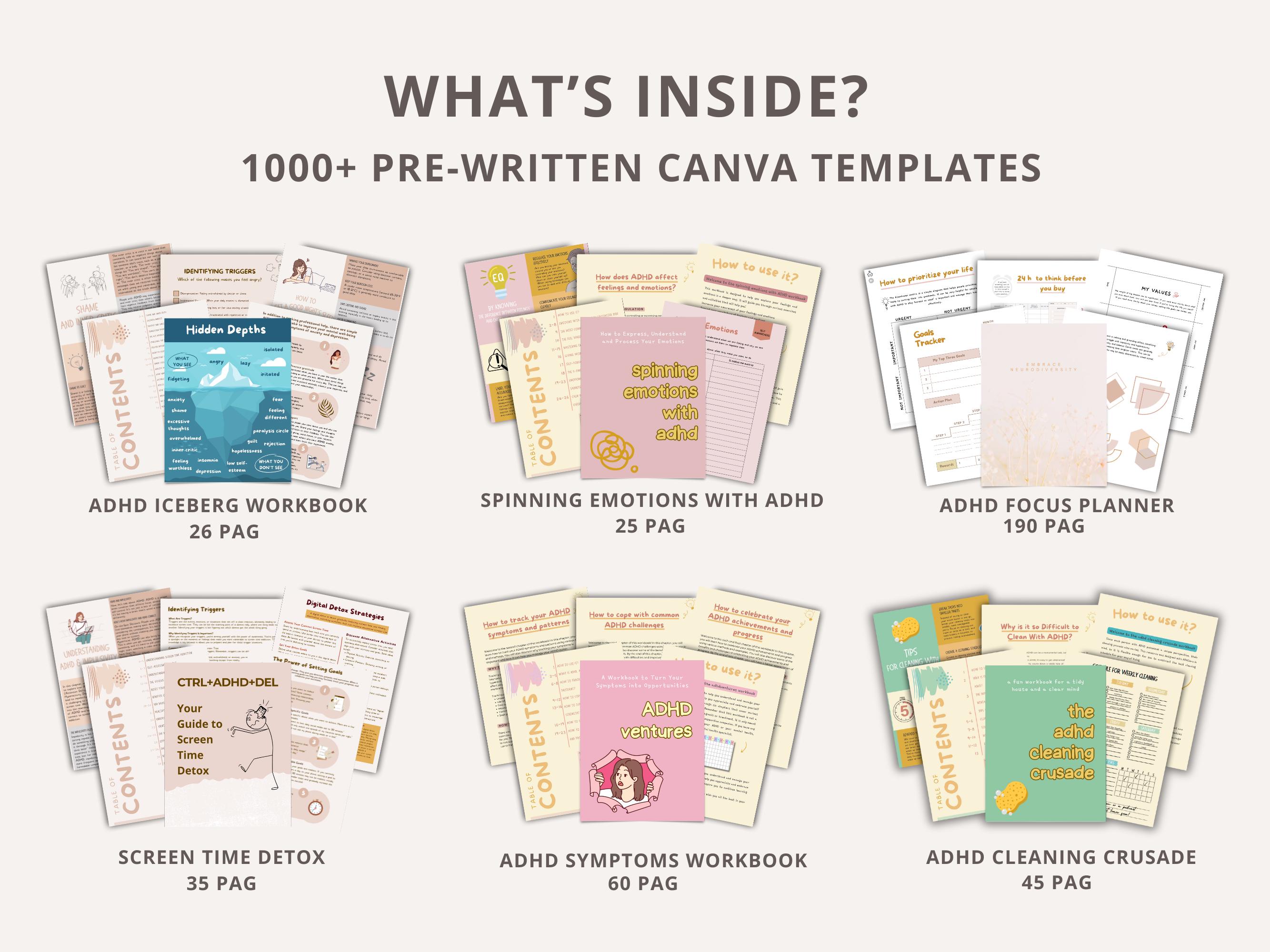 ? 1000+ ADHD & Mental Health Canva Templates — PLR & Master Resell Rights