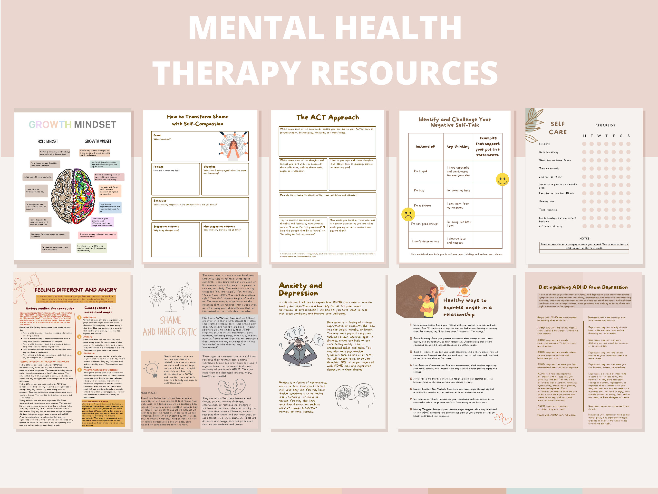 ADHD & therapy workbooks (CBT/DBT tools, emotional regulation, reflection pages)
