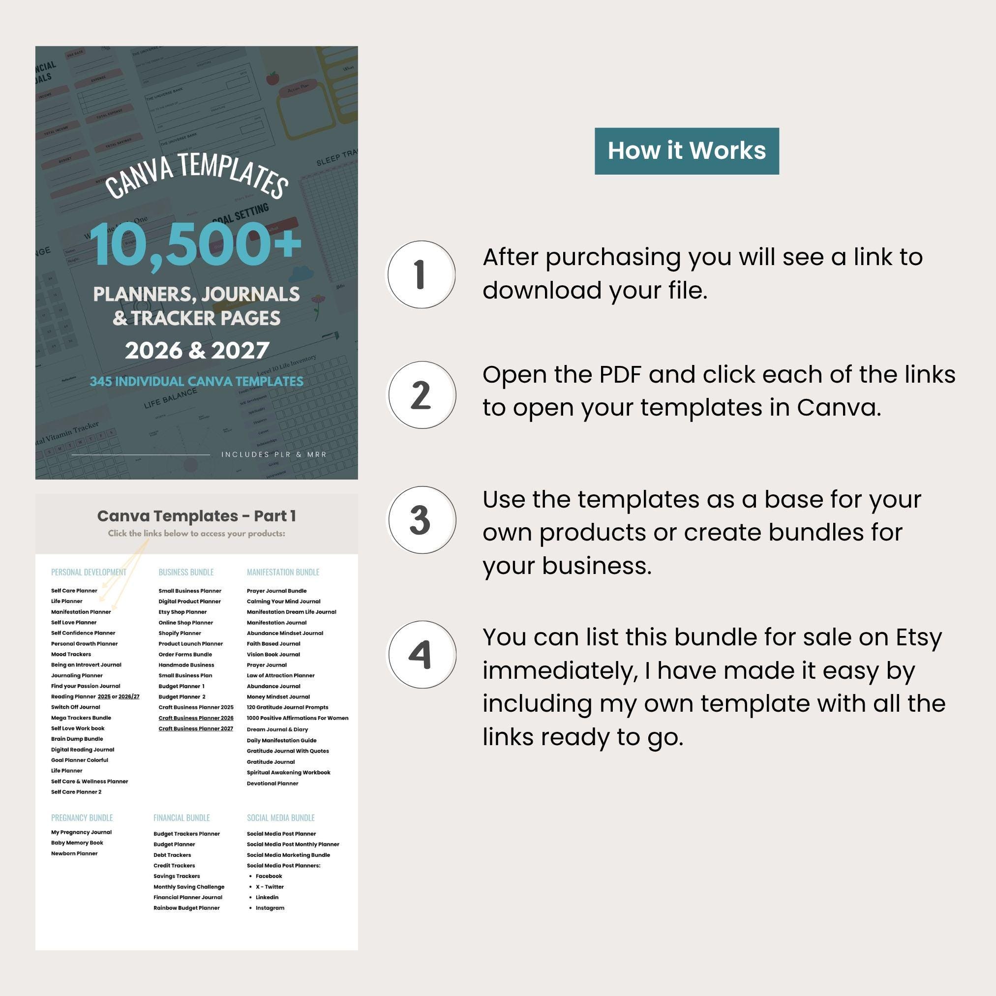 ?? 10,500+ Editable Canva Pages – ready-to-use planners, journals, and trackers for every niche.