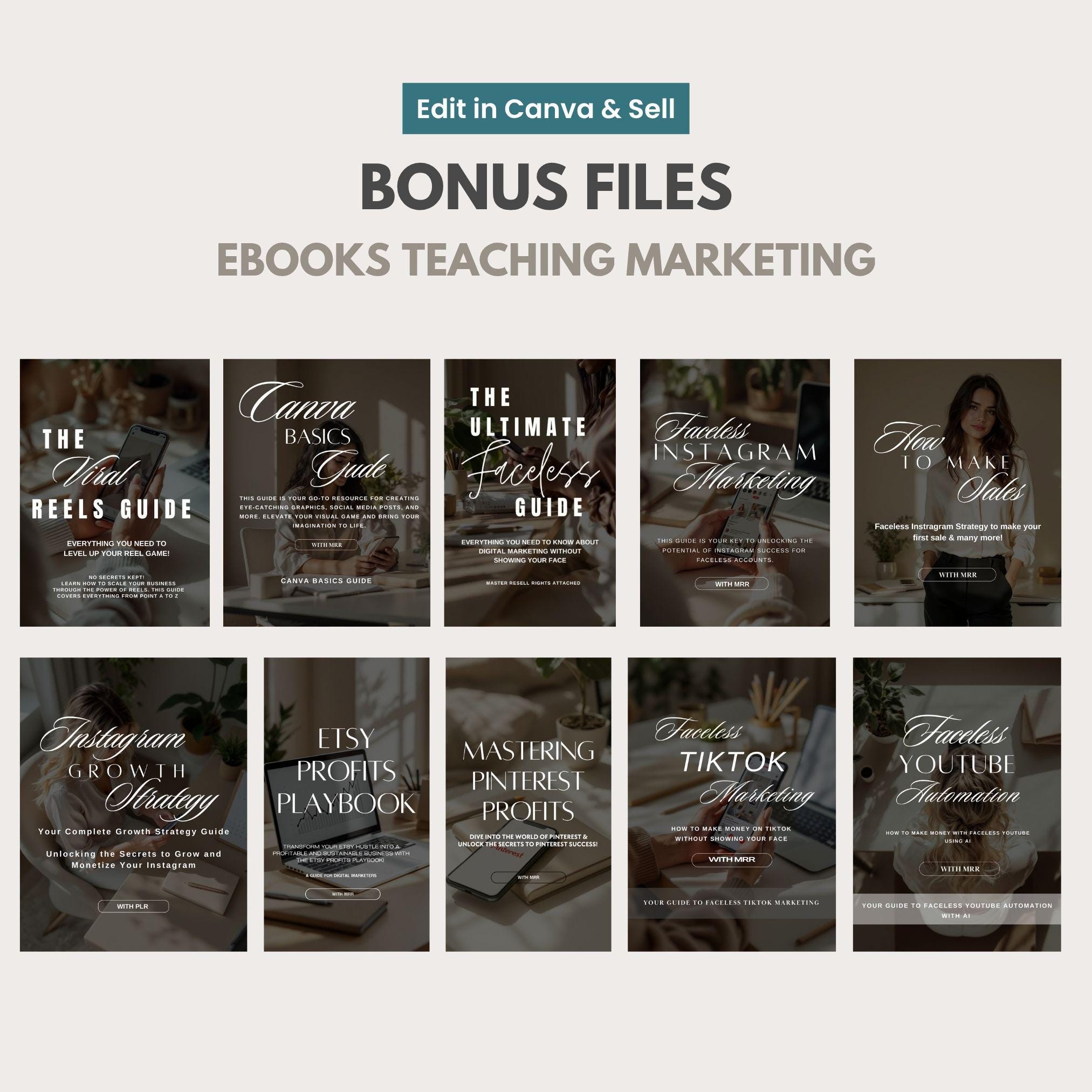 ? Bonus Marketing Guides: Canva crash course, mockups, and faceless marketing ebooks to help you promote and sell.