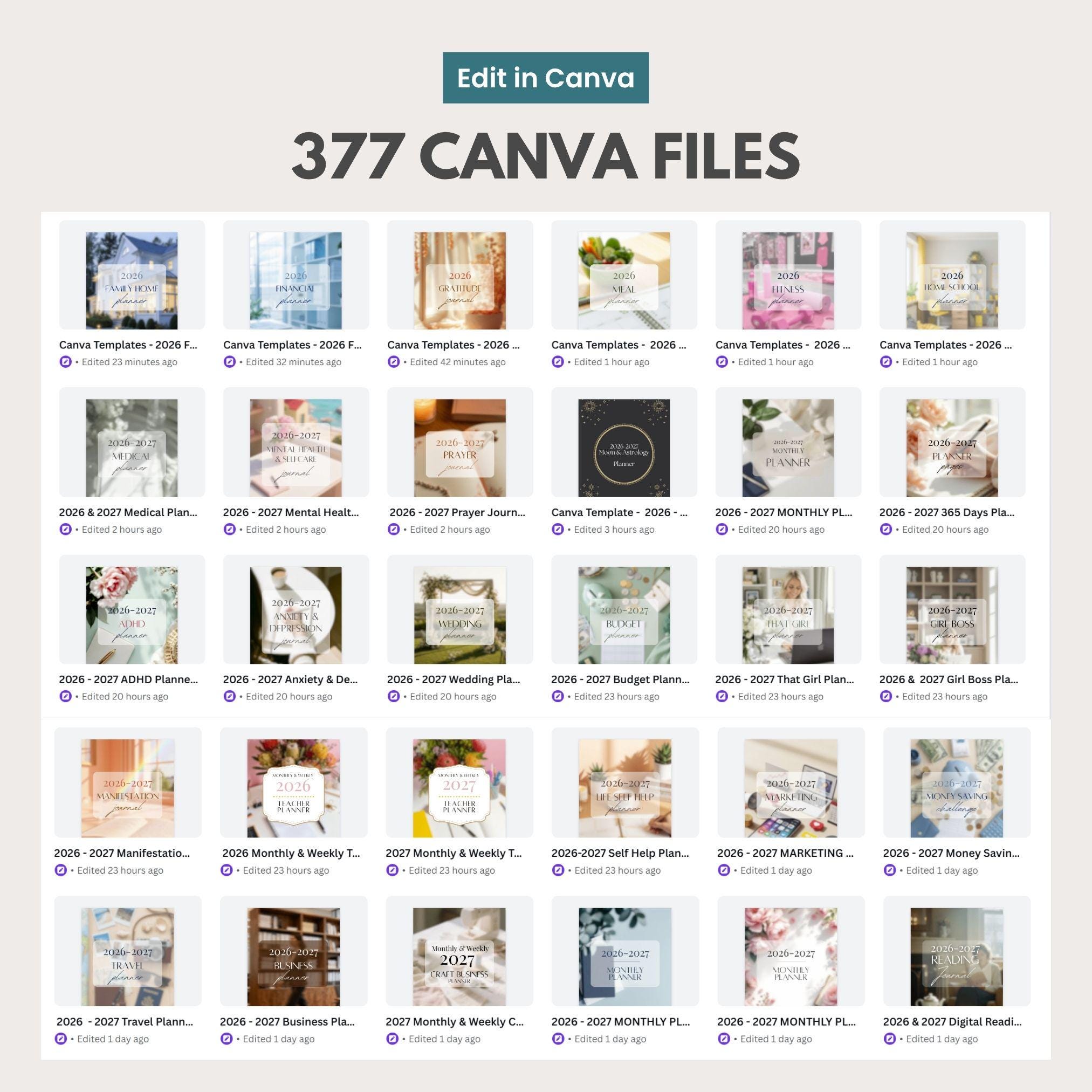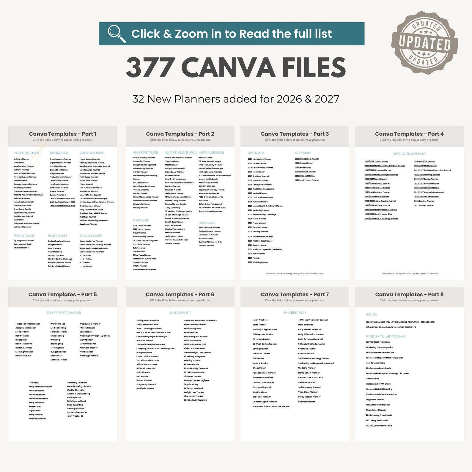 Now includes brand-new planners, journals, and calendars for 2025, 2026, and 2027, a bonus New Christmas planner. I have also recorded a instruction video for how to edit, use and resell this bundle.
