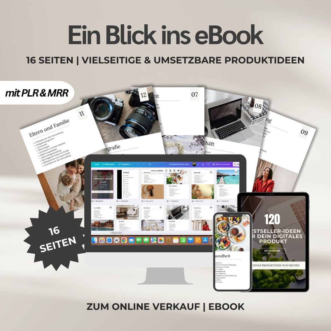 120 Deep-Dive Ideas: Strategically selected products from niche areas such as coaching, finance, spirituality, wedding planning, fitness & more.