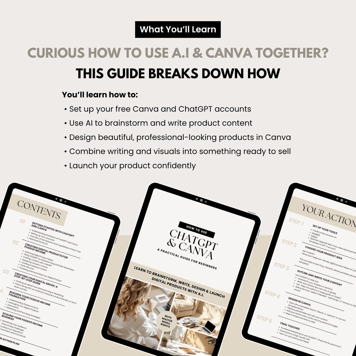 ? ChatGPT & Canva Beginner Guide | Digital Product Creation eBook | AI & Canva PLR Template | 87 Page Editable