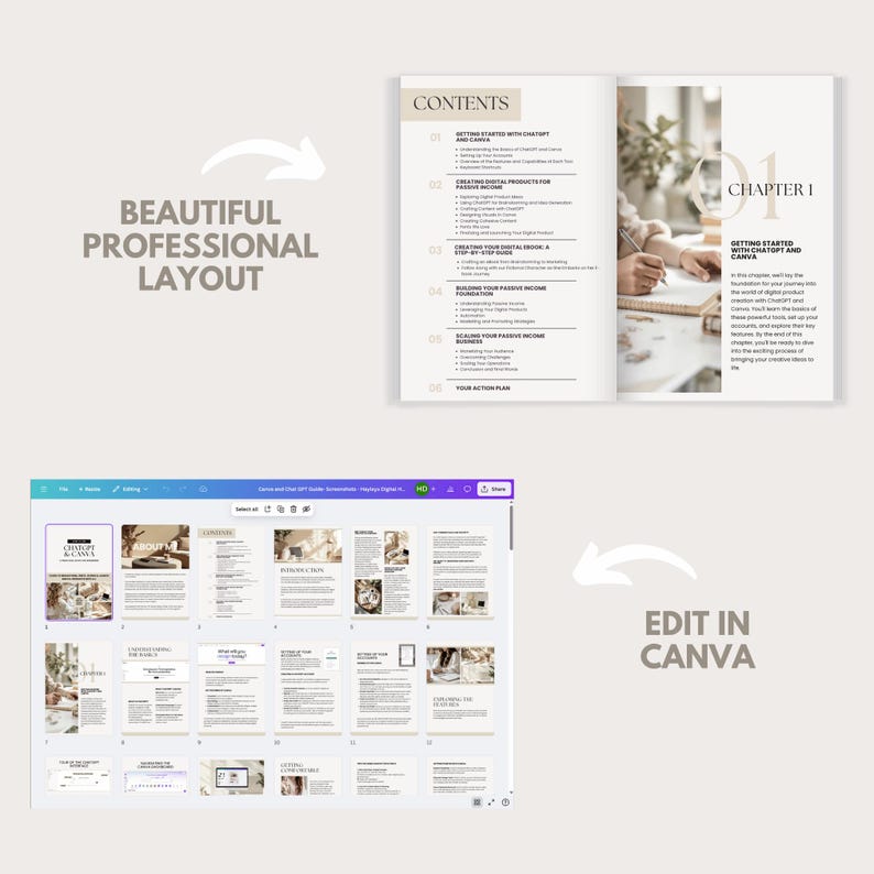 Design and launch your first digital product with ease using this editable 87-page ChatGPT & Canva Guide for Beginners – now updated for 2025! Perfect for anyone curious about creating faceless passive income with AI tools.