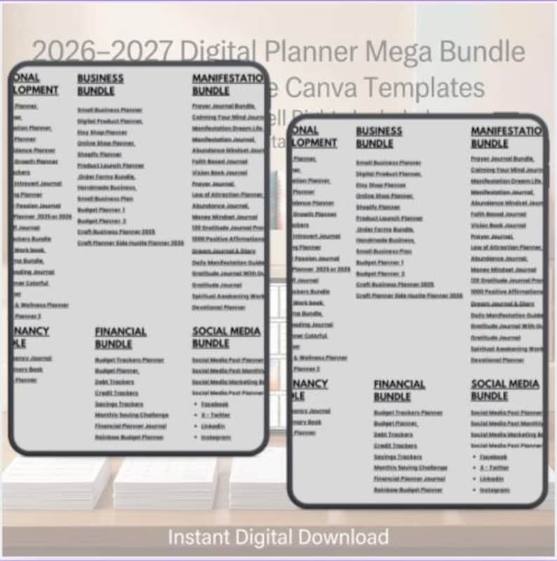 ? Digital Planner Business System 2026–2027 — Canva Templates for Resale (PLR & MRR)Stop wasting weeks creating pla