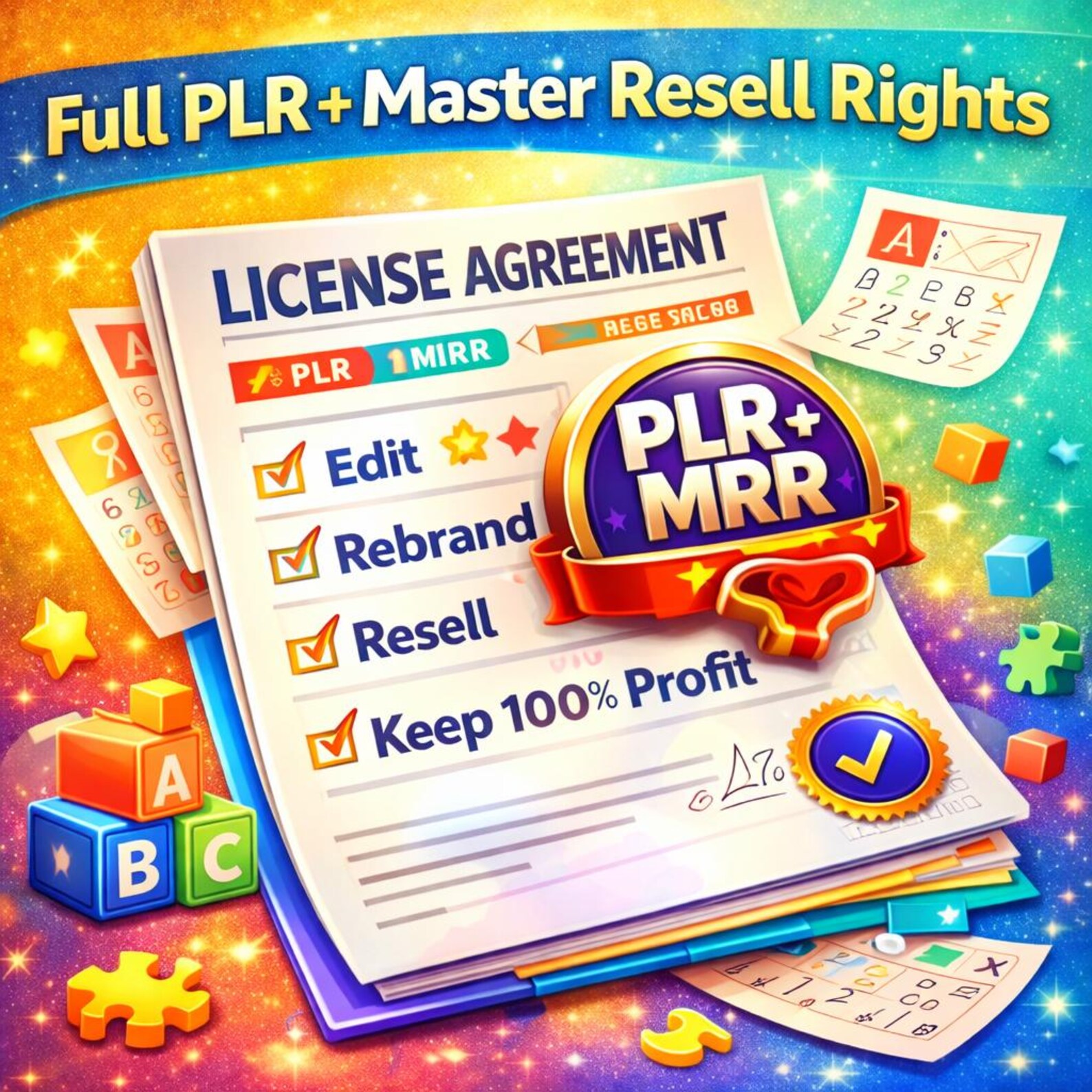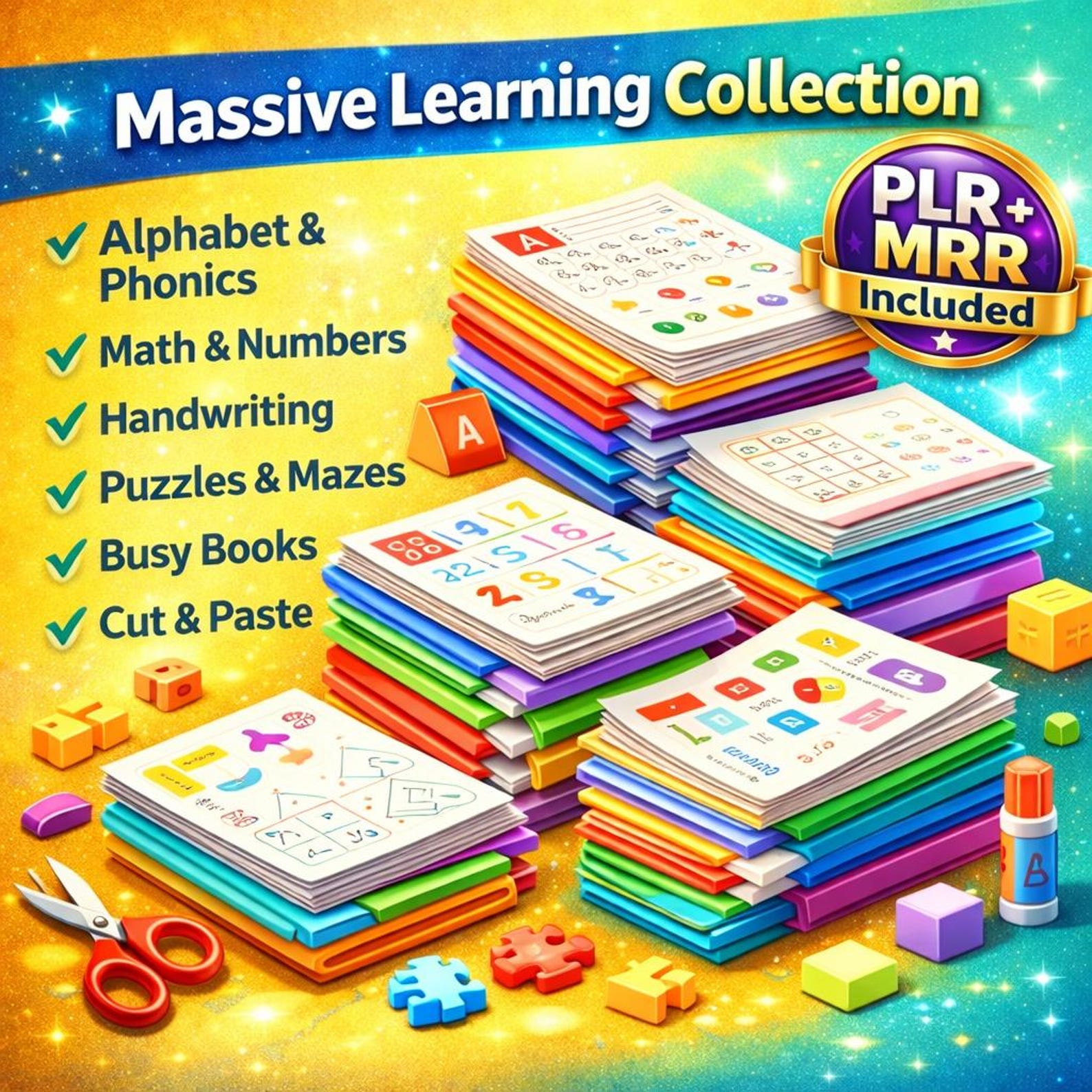 This 21,000+ worksheet Mega Library gives you structured learning content plus full PLR & MRR rights to customize or resell.