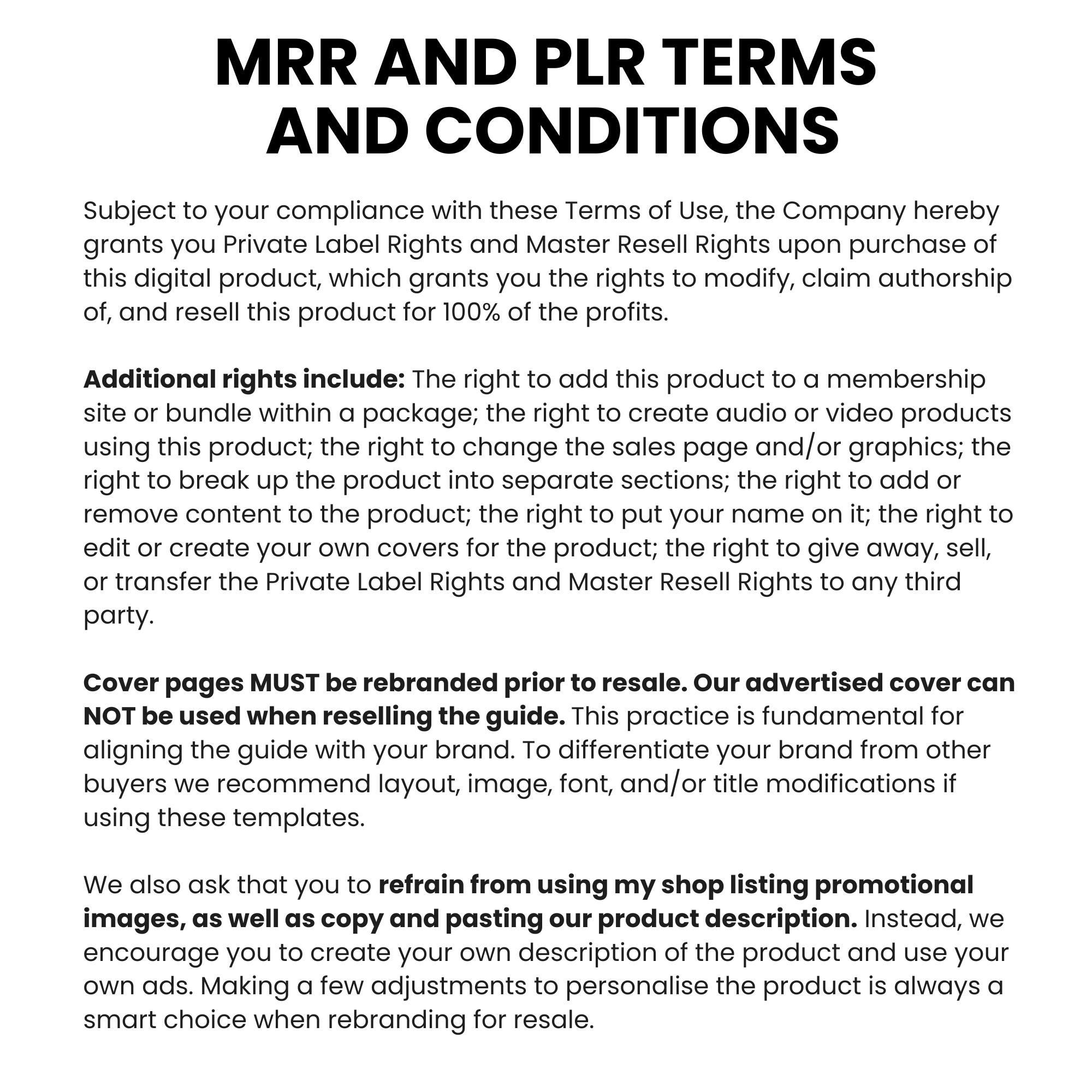 Master Resell Rights (MRR) and private label rights (PLR) included