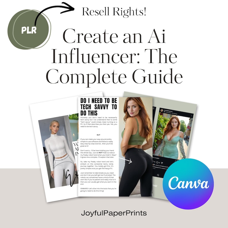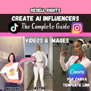 AI influencer guide, PLR digital product, resell rights course, Canva template course, AI content creation guide, social media digital download, private label rights ebook, AI marketing course, editable Canva ebook, online course to resell.
