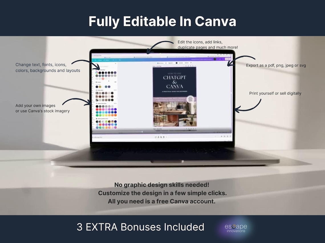 ? ChatGPT & Canva Beginner Guide | 107 Page Editable eBook | PLR + MRR Included | Create & Launch Digital Produ