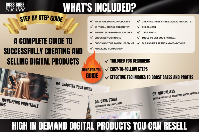 This comprehensive Done-for-You Guide is perfect for aspiring digital product sellers and entrepreneurs looking to not only start creating and selling digital products but also make money by reselling this guide. With clear, actionable steps and exclusive bonuses, this digital resource is your all-in-one tool for digital marketing success.