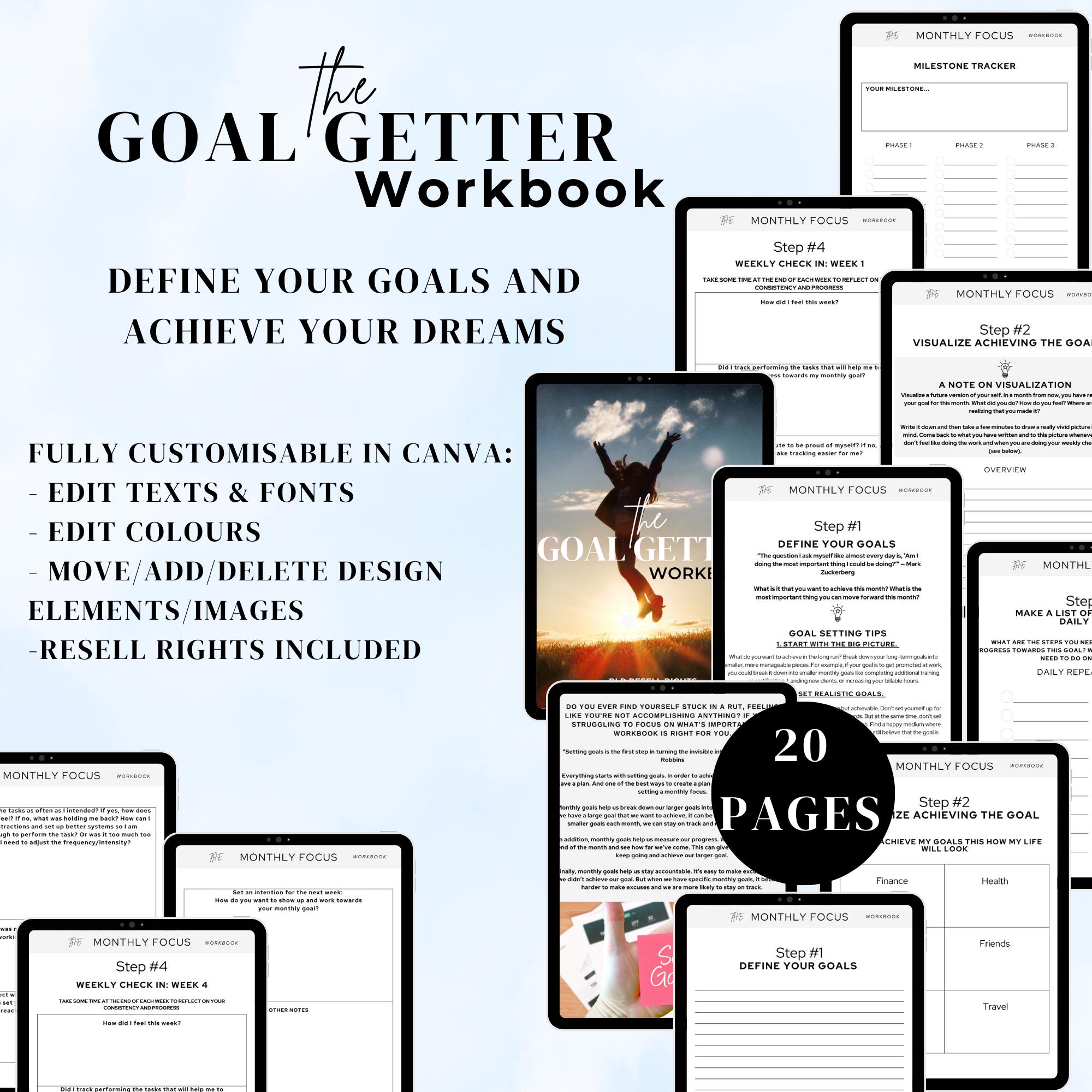 Goal Getter Workbook: Digital Marketing Planner Canva template MRR PLR resell rights Digital Download