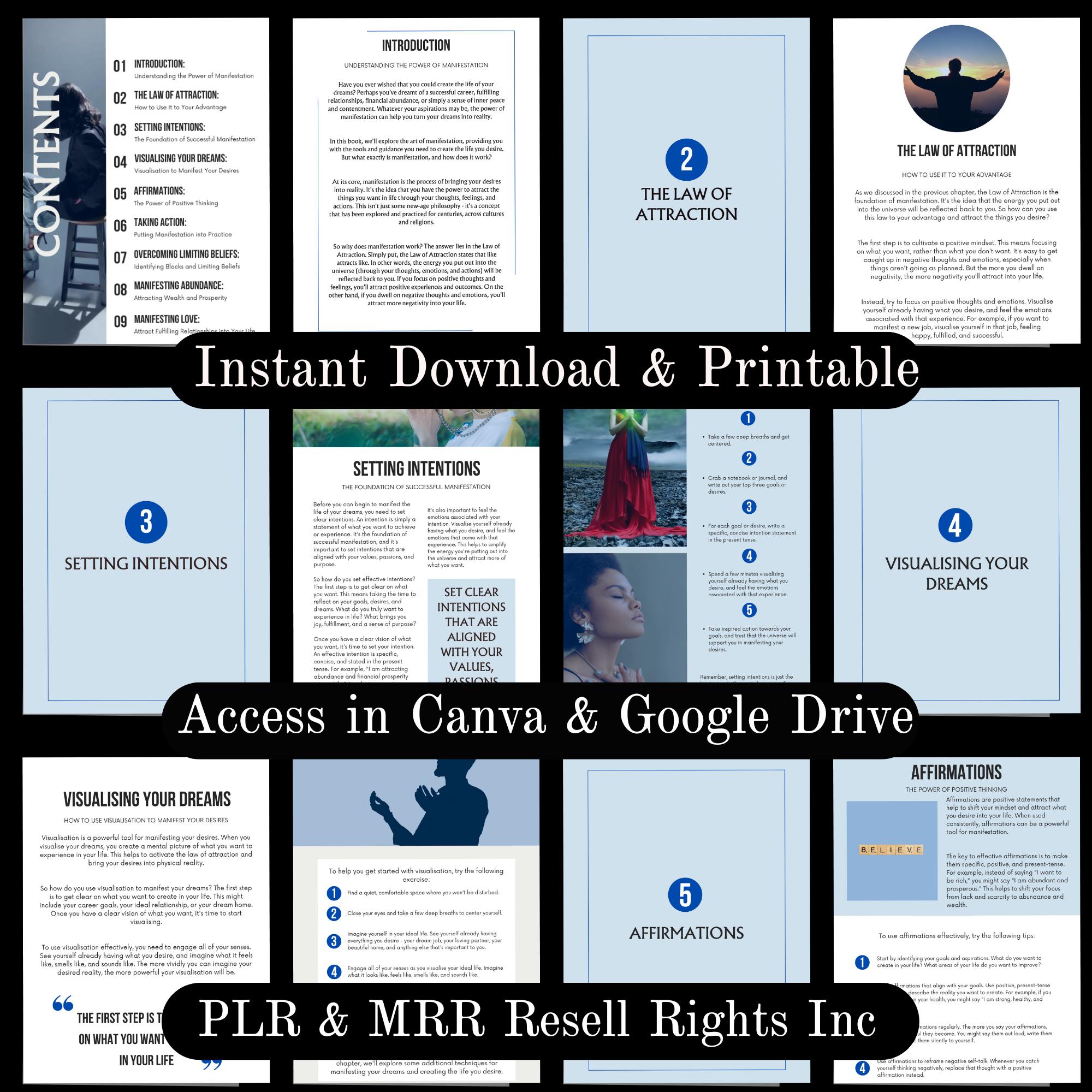 Manifestation Guide eBook: Law of Attraction, Canva template MRR/PLR Resell Rights Digital Download