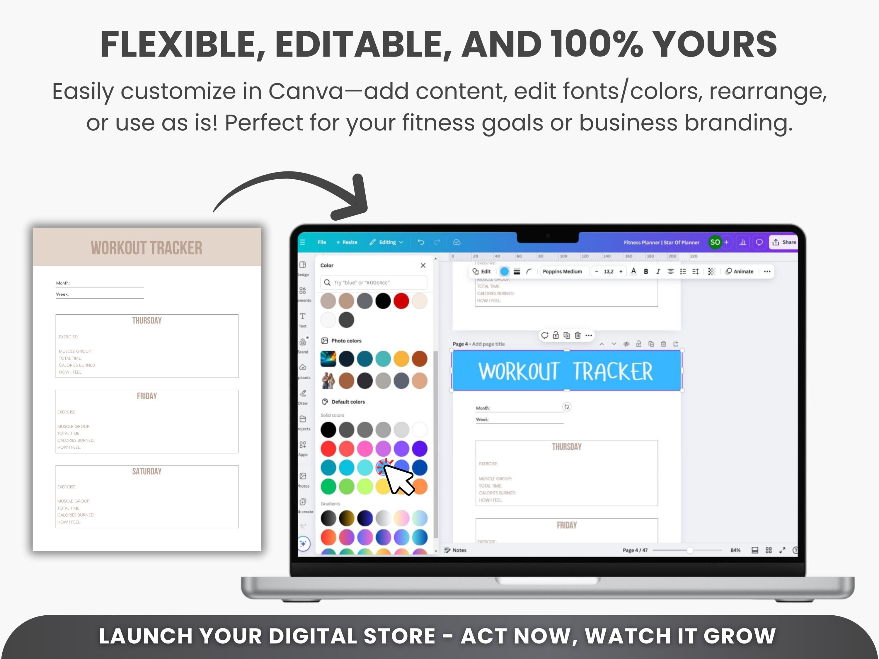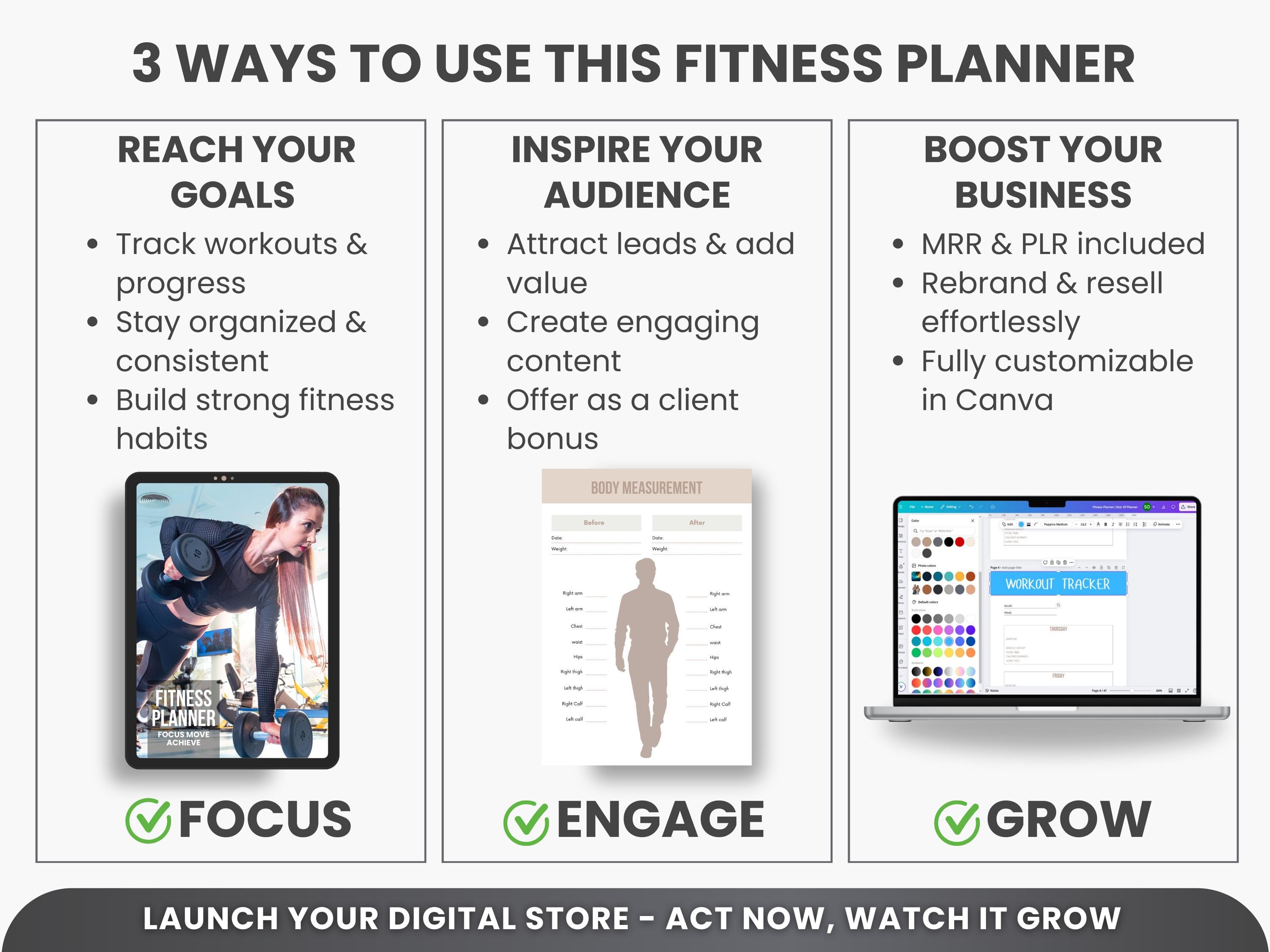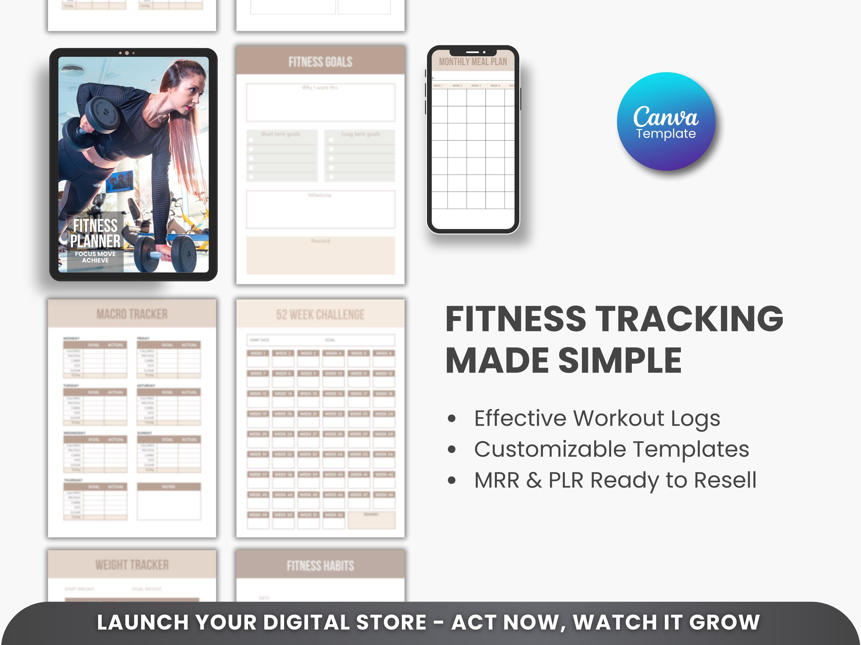 Ultimate Fitness Planner Bundle PLR & MRR – Editable Canva Workout Planner, Meal Planner, Weight Loss Tracker, Gym Log Book for Resell