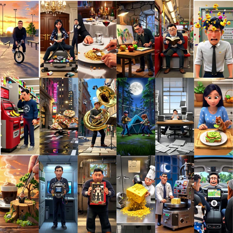 - ?? 46 Unique Vertical Videos: A diverse range of animated scenes featuring quirky characters like a dumbbell-lifting brain, a dancing pizza, a cool donut with shades, a superhero in action, and many more!